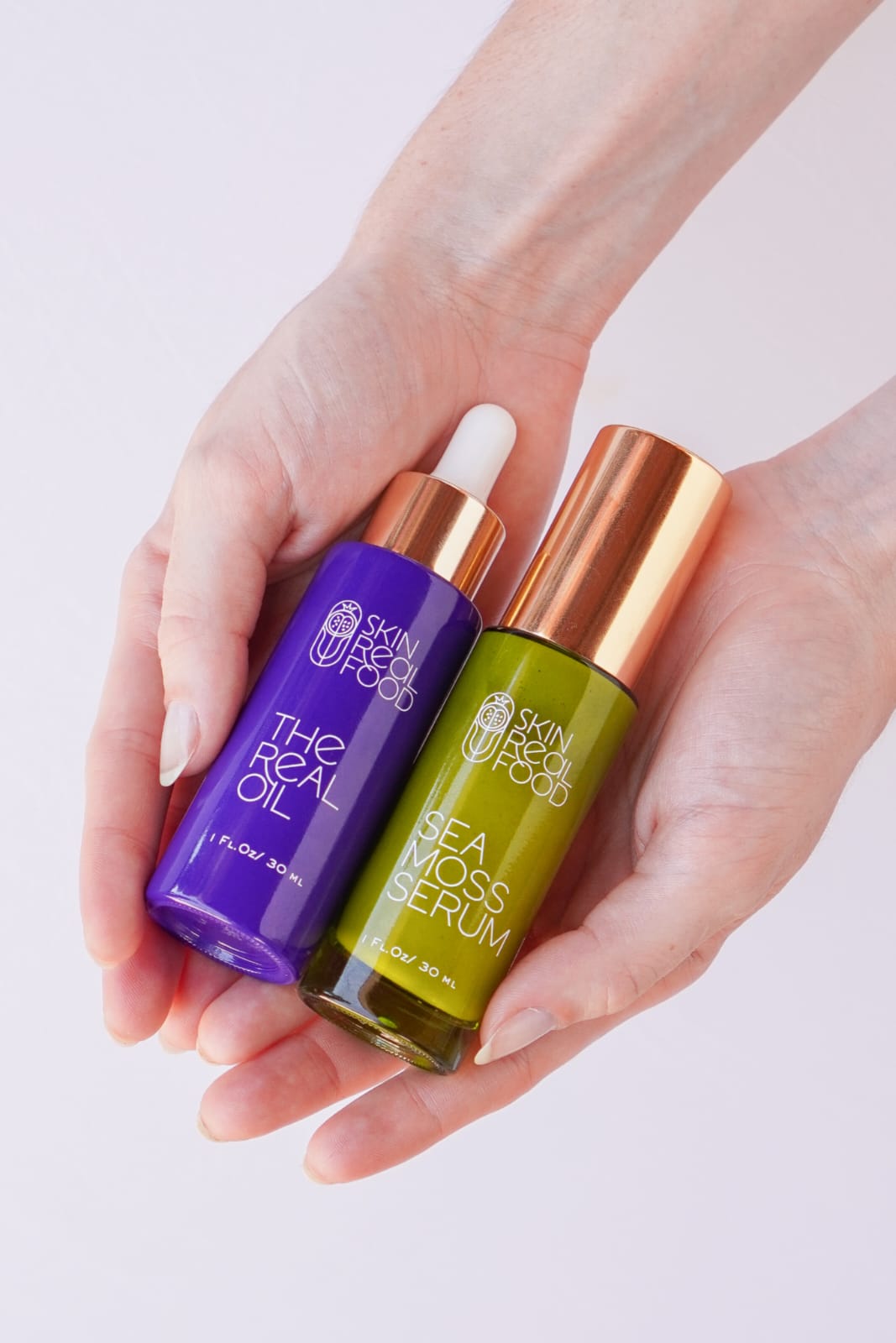 Sea Moss Serum y The Real Oil para una hidtratación y nutrición profunda todo el día.